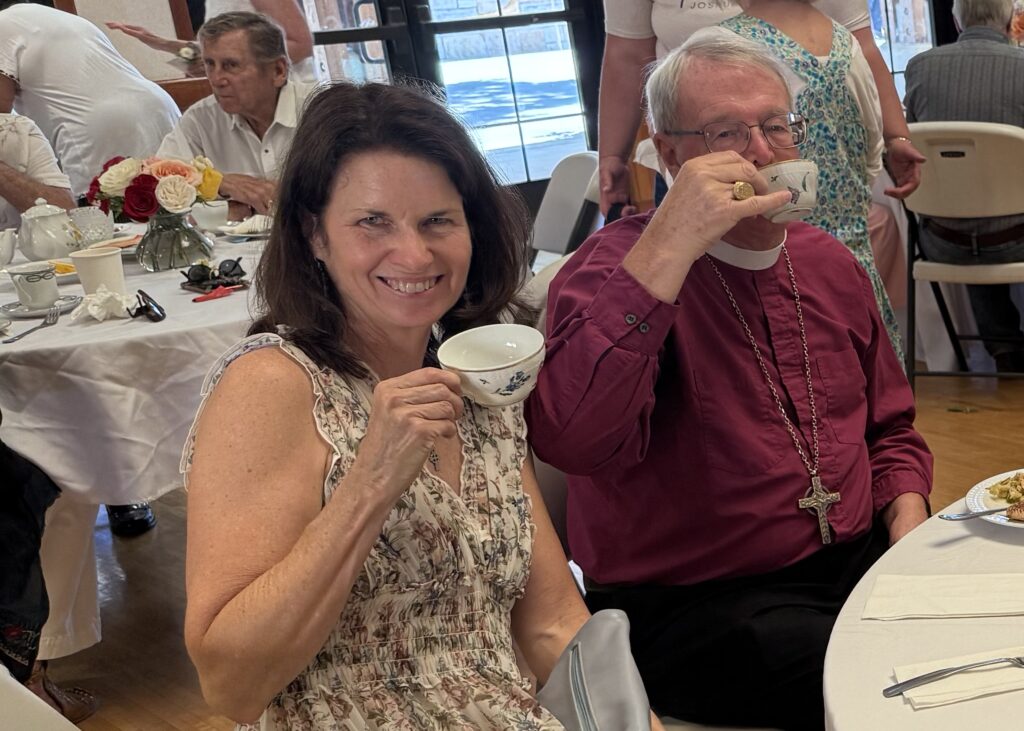 Close to 100 people gathered in the Newton room on Sunday for a high tea in honor of Bishop Alan and Donna Scarfe.  Bishop Alan was touched by the gift of a canvas with the Grace acrostic and an image of the church from the vestry, a scrapbook with photographs and notes from parishioners assembled by Reverend Amy, and a painting commemorating his “pub hours” from Marvin Humphrey.  Senior Warden Genevieve Schlangen summed up the feelings of the congregation in her words of heartfelt gratitude for Bishop Alan’s wisdom, humor, and guidance of the parish during uncertain times. Bishop Alan expressed his love and gratitude for the congregation and all he has received in return. You can listen to his Sunday sermon here.